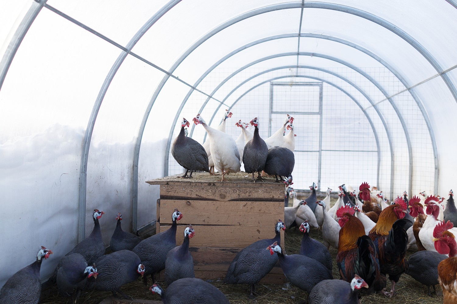 Как отличить агрегатора от продавца-фермера? Во-первых, обратите внимание на количество «расчлененки» на прилавке — гузки, желудки, печенки. У правдивого фермерского хозяйства не бывает промышленных объемов «запчастей», да и вообще у нас этого практически нет. Чистить желудки — невыгодно, потому что кур мы перед забоем не отсаживаем и не поим соленой водой, чтобы они очистились. Наши птицы живут, не зная, что сегодня пойдут в расход. Мы везем из Франции электронаркоз и купили специальный аппарат, который перья выщипывает, а не выбивает. Следим за такими тонкостями, потому что лично мне не нравится серость промышленного сельского хозяйства.