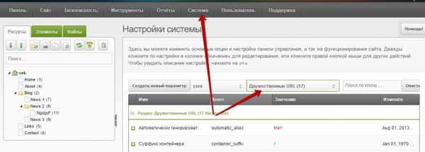 ЧПУ (здесь это называется «дружественные URL») настраиваются без дополнительных плагинов, достаточно зайти в «Настройки системы».