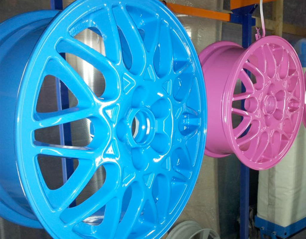 Для получения прочного, привлекательного колеса, устойчивого к ржавчине, теплу, сколам и царапинам, используется технология сухой покраски и нагревания. Мелкоизмельченные частицы краски и смолы электрически заряжаются и распыляются на поверхность. Затем круг нагревают в печи для отверждения, которая запекается на финише.