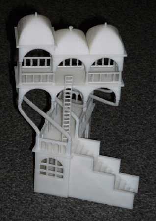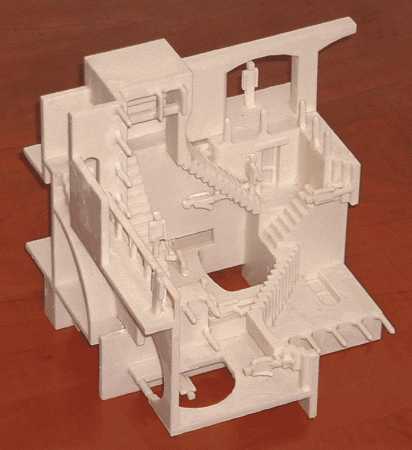 Ну и как говорится с картины в реальность. Ниже приведены три работы Маурица Эшера, выполненные с использованием принципа невозможных фигур. Они также успешно отпечатаны на 3D принтерах.