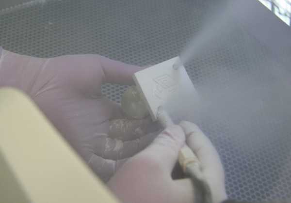 После окончания печати излишки гипса удаляются специальным пылесосом, а из труднодоступных мест сжатым воздухом.